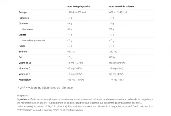 - Boisson énergétique antioxydante pour les efforts intenses ou inférieurs à 3h