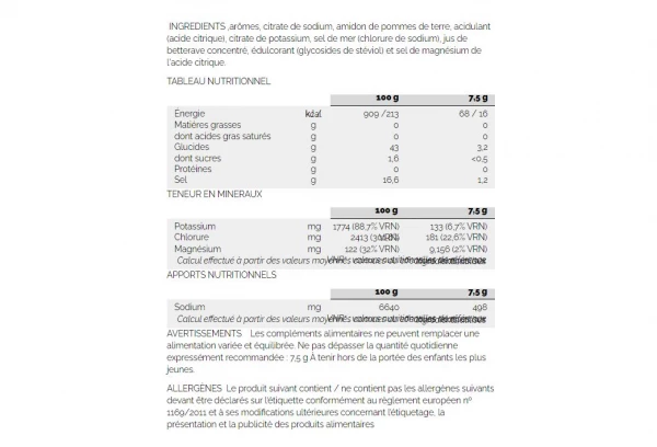Chaque prise d’Hydrazero apporte 500 mg de sodium, ce qui permet d’améliorer l’hydratation et offre un meilleur équilibre des fluides corporels.