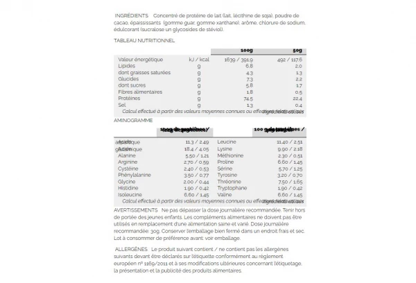 Avec environ 115 kcal par ration et 23 g de protéines, dont 25 % sont des BCAA, nous avons réussi à faire de Whey Protein un milk-shake protéiné, faible en glucides et sucres, édulcoré avec de la stévia, qui permet :