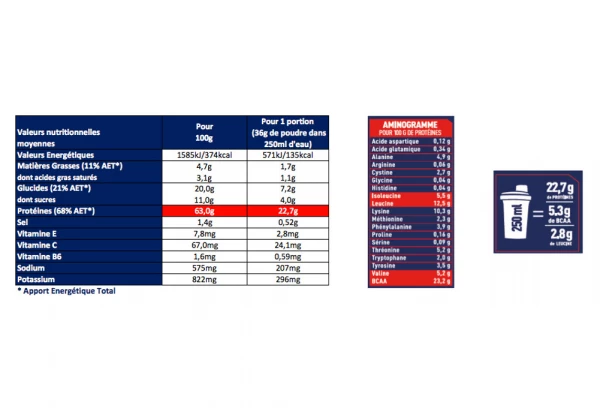 - Protéines, qui vont contribuer à restaurer la masse musculaire.